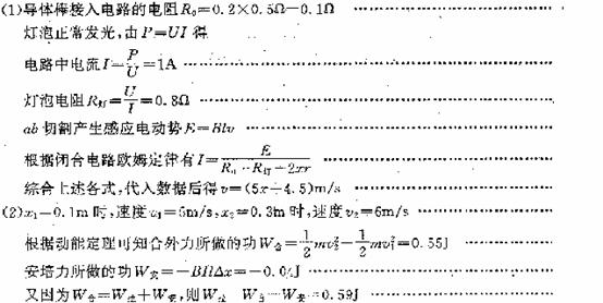 (2)由能量守恒可得:P=I2(R+r) (3分) P=5w (1分)