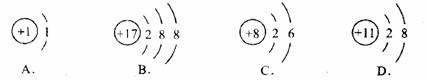 8.(08年苏州)根据下列微粒的结构示意图(圆圈内“+”号和数字表示带正电的质子的数目,弧线上数字代表各电子层带负电的电子的数目),其中属于阳离子的是 ( )