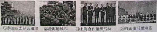 10.下列图片中能反映我国积极参与地区性国际组织的外交活动有