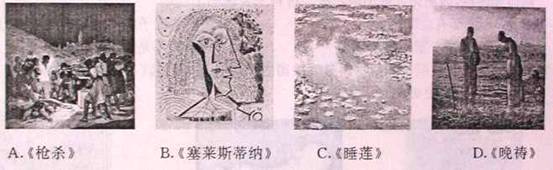 20.《绘画与科学》中说:“19世纪后半期,随着物理学中光学知识的系统研究,以及光学和色彩学关系的发展,使人们看到了绘画崭新的面孔。”以下绘画符合该思想的是