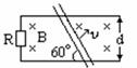如图所示,平行金属导轨的间距为d,一端跨接一阻值为R的电阻,匀强磁场的磁感应强度为B,方向垂直于平行轨道所在平面。一根长直金属棒与轨道成60°角放置,且接触良好,则当金属棒以垂直于棒的恒定速度v沿金属轨道滑行时,其它电阻不计,电阻R中的电流强度为 ( )