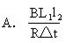 如图中,闭合矩形线框abcd位于磁感应强度为B的匀强磁中,ab边位于磁场边缘,线框平面与磁场垂直,ab边和bc边分别用L1和L2。若把线框沿v的方向匀速拉出磁场所用时间为△t,则通过框导线截面的电量是 ( )