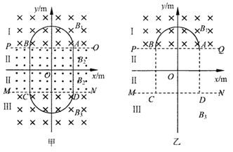 成Ⅰ、Ⅱ、Ⅲ三个区域,在三个区域中分别存在匀强磁场