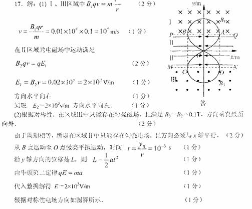 设进入磁场的点为Q,离开磁场的点为R,圆心为O3,如图所示,四边形OQ O3R是菱形,故O R∥ QO3.……………………(2分)