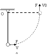 (8分)(辨析题)如图所示,长为L的轻绳一端固定在O点,另一端系一质量为m的小球,在最低点给小球一水平初速度v0,同时对小球施加一大小不变,方向始终垂直于绳的力F,小球沿圆周运动到绳水平时,小球速度大小恰好也为v0。求F的大小。