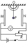 (卢湾)28、某学习小组用如图所示的装置来测量物体的带电量:外表面镀有金属膜的空心塑料小球(带电后可看作点电荷),用绝缘丝线悬挂于O点,O点固定着一个可测量丝线偏离竖直方向角度θ的量角器,M、N是两块相同的、正对着的平行放置的金属板(加上电压后其内部电场可看作匀强电场)。小球的质量为m, M、N板之间的距离为d。