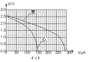 (3)实验二:减小光的强度,重复实验,得到的U-I曲线如图(c)中的乙线所示。
