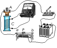 答案:.磁通量、a 、移动滑动变阻器的滑片(线圈A在线圈C中拔出或插入、断开电键等)