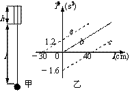 (青浦)29、(6分)将一单摆装置竖直悬于某一深度为h(未知)且开口向下的固定小筒中(单摆的下部分露出筒外),如图甲所示。将悬线拉离平衡位置一个小角度后由静止释放,设单摆摆动过程中悬线不会碰到筒壁。如果本实验的长度测量工具只能测量出筒下端口到摆球球心之间的距离l,并通过改变l而测出对应的摆动周期T,再以T2为纵轴、l为横轴,作出T2-l图像,则可以由此图像得出小筒的深度h和当地的重力加速度g。