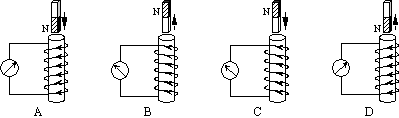 26.(徐汇)(4分)(多选题)如下左图是电流通过检流计时指针的偏转情况。右面四图为验证楞次定律实验的示意图,竖直放置的线圈固定不动,将磁铁从线圈上方插入或拔出,线圈和电流表构成的闭合回路中就会产生感应电流。各图中分别标出了磁铁的极性、磁铁相对线圈的运动方向以及线圈中产生的感应电流的方向等情况,其中方向关系正确的是( )