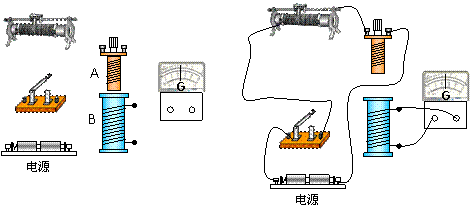 (2)某同学用通电螺线管代替条形磁铁,实验器材如右图所示,请在图中用笔线代替导线连接成相应的实物连接图。