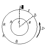 (闸北)28.(4分) 1920年科学家史特恩测定气体分子速率的装置如图所示,A、B为一双层共轴圆筒形容器,外筒半径为R,内筒半径为r,可同时绕其共同轴以同一角速度w高速旋转,其内部抽成真空。沿共同轴装有一根镀银的铂丝K,在铂丝上通电使其加热,银分子(即原子)蒸发成气体,其中一部分分子穿过A筒的狭缝a射出到达B筒的内表面。由于分子由内筒到达外筒需要一定时间,若容器不动,这些分子将到达外筒内壁上的b点,若容器转动,从a穿过的这些分子仍将沿原来的运动方向到达外筒内壁,但容器静止时的b点已转过弧长s到达b’点。