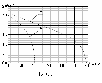 (3) 实验二:减小实验一中光的强度,重复实验,测得U-I曲线b,见图(2)所示。若取实验一中的路端电压为1.5V,保持外电路中电阻不变,则实验二中外电路消耗的电功率为