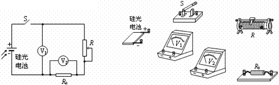 29.(金山)硅光电池是一种可将光能转换为电能的器件。某同学用左所示电路探究硅光电池的路端电压U与总电流I的关系。图中R0为已知定值电阻,电压表视为理想电压表。