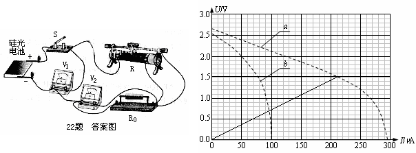(2)实验一:用一定强度的光照射硅光电池,闭合电键S,调节可调电阻的阻值,通过测量得到该电池的U-I曲线a