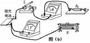 29.(浦东)(8分)硅光电池是一种可将光能转换为电能的元件。某同学利用图(a)所示电路探究某硅光电池的路端电压U与电流I的关系。图中R0=2Ω,电压表、电流表均视为理想电表。