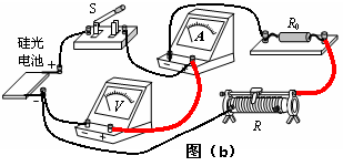 29.(闸北)(8分)硅光电池是一种可将光能转换为电能的器件。某同学用图(1)所示电路探究硅光电池的路端电压U与总电流I的关系。图中R0为已知定值电阻,电压表视为理想电压表。