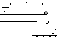 13.(14分)如图所示,质量mA=1.0kg的物块A放在水平固定桌面上,由跨过光滑小定滑轮的轻绳与质量mB=1.5kg的物块B相连。轻绳拉直时用手托住物块B,使其静止在距地面h=0.6m的高度处,此时物块A与定滑轮相距L。已知物块A与桌面间的动摩擦因数μ=0.25 ,g取10m/s2。现释放物块B,物块B向下运动。