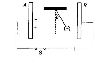平行板电容器的两极板A、B接于电源两极,两极板竖直、平行正对,一带正电小球悬挂在电容器内部,闭合电键S,电容器充电,悬线偏