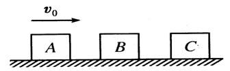 现让A物块以初速度v0向B运动,A、B相碰后不再分开,共同向C运动;它们和C相碰后也不再分开,ABC共同向右运动求: