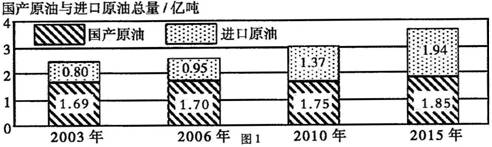 国际市场石油价格一路飙升。2007年11月我国国家发改委也正式上调了燃油价格。读图1中国原油需求预测图,回答1-2题。