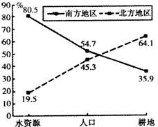 C.人均耕地面积南方多于北方 D.南方的人均水资源为北方的6倍