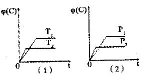(C)在不同温度(T)和不同压强(P)的条件下随时间(t)的变化关系如图所示。下列叙述正确的是 ( )