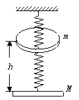 6.(2000年春季高考试题)一轻质弹簧,上端悬挂于天花板上,下端系一质量为M的平板,处在平衡状态,一质量为m的均匀环套在弹簧外,与平板的距离为h,如图3-2-3所示.让环自由落下,撞击平板.已知碰后环与板以相同的速度向下运动,使弹簧伸长