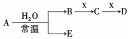 (2)若E为单质气体,D为白色沉淀,A的化学式可能是 ,B含有的化学键类型为 ,C与X反应的离子方程式为 。