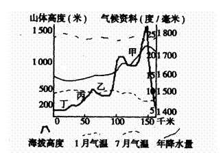 乙是 ;丙是 ;丁是 ,主要粮食作物是 。(6分)