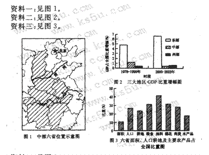 针对我国中部地区现状,国家在“十一五”规划纲要(2006-2010)中提出“促进中部地区崛起”的区域发展战略。山西、河南、湖南、湖北、江西、安徽是我国中部崛起战略中的重要省区。根据下述资料,结合所学知识,回答(1)――(5)题。(9分)