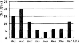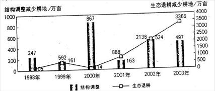 29.由于政策原因,我国耕地逐年减少,生态退耕减少耕地比重最大的一年出现在