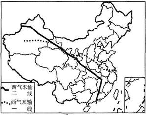 材料一:2009年2月7日,我国第一条引进境外天然气资源的大型管道工程西气东输二线工程在深圳正式开工。下图是“西气东输一线”、“西气东输二线”走向示意图。
