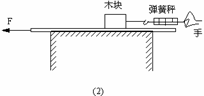 10、为了测定木块与木板之间的动摩擦因数,利用现有的器材:“木板、木块、弹簧秤、刻度尺、秒表、砂桶与砂”,有人设计了下面三种实验方案:(1)增减砂桶内的砂,使木块匀速运动,并测出木块、砂与砂桶的重量;(2)用力F拉木板向左运动,并读出弹簧秤的示数,称出木块的重量;(3)让木块从木板顶端加速滑到底端,并测出下滑时间及相应各长度,如果这三个实验的操作正确无误,你认为哪个实验方案测动摩擦因数最准确而且最简单?