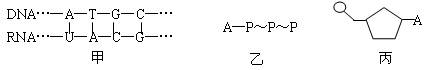 C.甲、乙、丙中都含有腺嘌呤 D.丙图所示物质含有的单糖只能是核糖