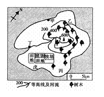 右图是地处热带太平洋中的一个岛屿。现有一支青年志愿者队伍,欲对该岛进行开发。该岛盛行较强的东南风,有流速较大的河流及森林。据此并结合右图分析完成31-32题。