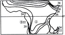 右图是沿某大陆35°N所作的剖面示意图,回答29-30题。