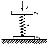 8.两块质量分别为m1、m2的木板,被一根劲度系数为k的轻弹簧连在一起,并在m1板上加压力F(图1-20-3).为了使得撤去F后,m1跳起时恰好能带起m2板,则所加压力F的最小值为