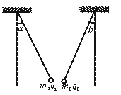 7.如图1-23-1所示,质量分别是m1和m2,电荷量分别是q1和q2的小球,用长度不等的轻丝线悬挂起来,两丝线与竖直方向的夹角分别是α和β(α>β),两小球恰在同一水平线上,那么