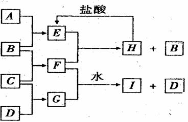 A、B、C、D是按原子序数由小到大排列的第二、三周期元素的单质。B、E均为组成空气的成分。F的焰色反应呈黄色。在G中,非金属元素与金属元素的原子个数比为1:2。在一定条件下,各物质之间的相互转化关系如图(图中部分产物未列出):