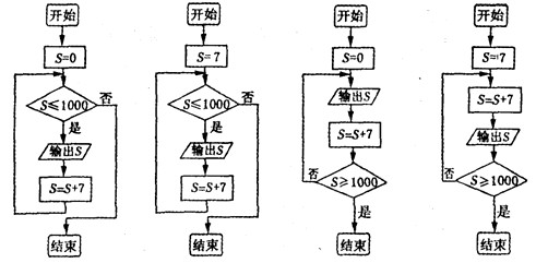 5.有编号为1,2,…,1000的产品,现需从中抽取所有编号能被7整除的产品作为样品进行检验。下面是四位同学设计的程序框图,其中正确的是