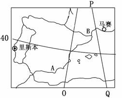 读“世界局部地区图”,当图中PQ线为昏线且与极圈相切时,回答1-2题。