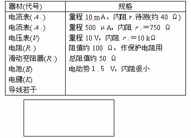 4.(★★★★★)(2000年全国)从下表中选出适当的实验器材,设计一电路来测量电流表A1的内阻r1,要求方法简捷,有尽可能高的测量精度,并能测得多组数据.