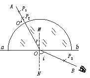(7)移去玻璃砖和大头针,连接OP3,作过O点与ab垂直的直线MN;