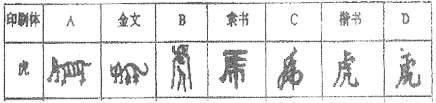 13.汉字是由笔画构成的方块状字,经历了约7000年的发展,至今仍充满活力。今年是农历虎年,下图以“虎”为例,分别展现了“汉字七体”的风采,其中小篆是 ( )