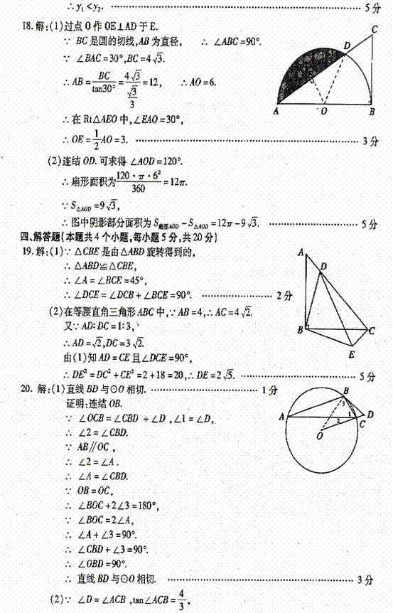 18.已知:如图,AB是半圆D的直径,∠BAC=30