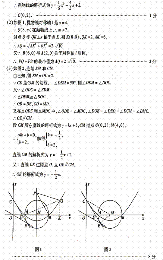 (3)CE是过点C的⊙M的切线,点E是切点,求