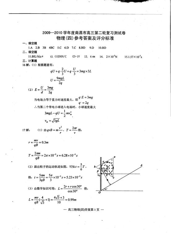 沿与此平行线成60°角的方向,把lμC的负电荷从A点 移到B点,电场力傲功为2μJ,A、B间距为2cm,则匀 强电场的场强大小 ;若B点电势为1V,则 A点电势为 .