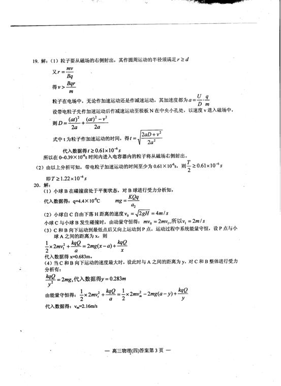 16.如图所示,一平行板电容器水平放置,上极板开有一小孔,三个质量均为m,带电量均为+q的小球,其间用长为L的绝缘轻杆相连,处于竖直状态,已知d=3L,今使上端小球恰好位于小孔中,且由静止释放,让三球竖直下落,当下端小球到达下极板时,速度刚好为零