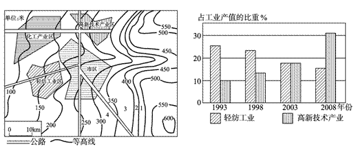 (3) 伴随城市规模的扩大,该市规划并建设了新的产业区。请依据图表信息对高新技术产业区区位进行客观评价